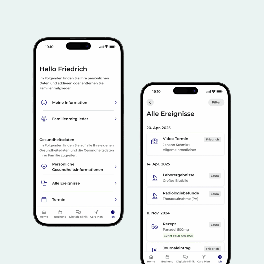 - Zugriff auf persönliche Gesundheitsdaten, Rezepte, Laborergebnisse und Besuchsnotizen – alles an einem Ort