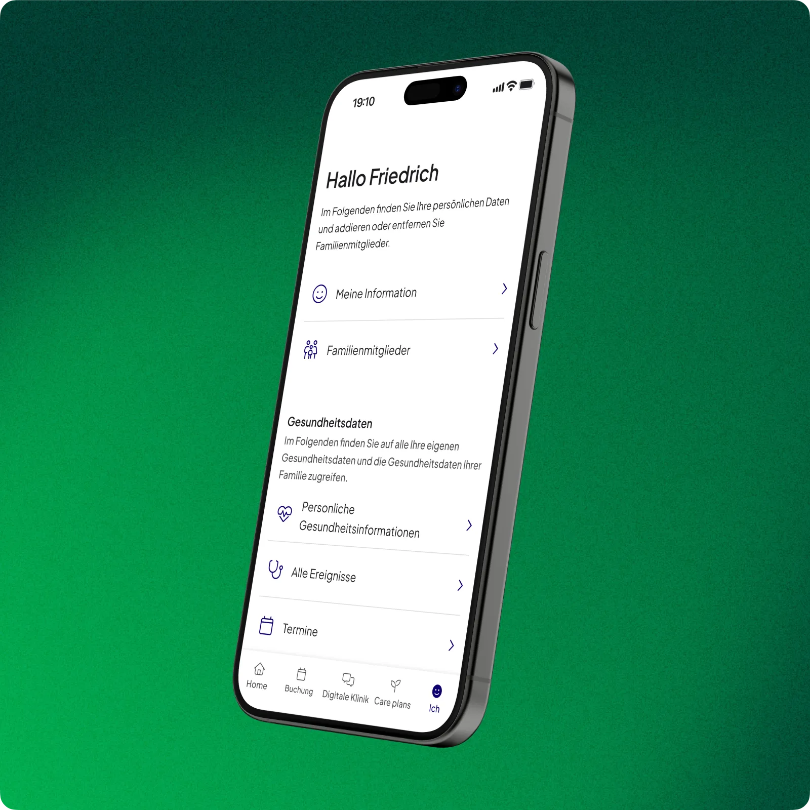 - Persönliche Informationen für sich selbst und Familienmitglieder verwalten und aktualisieren