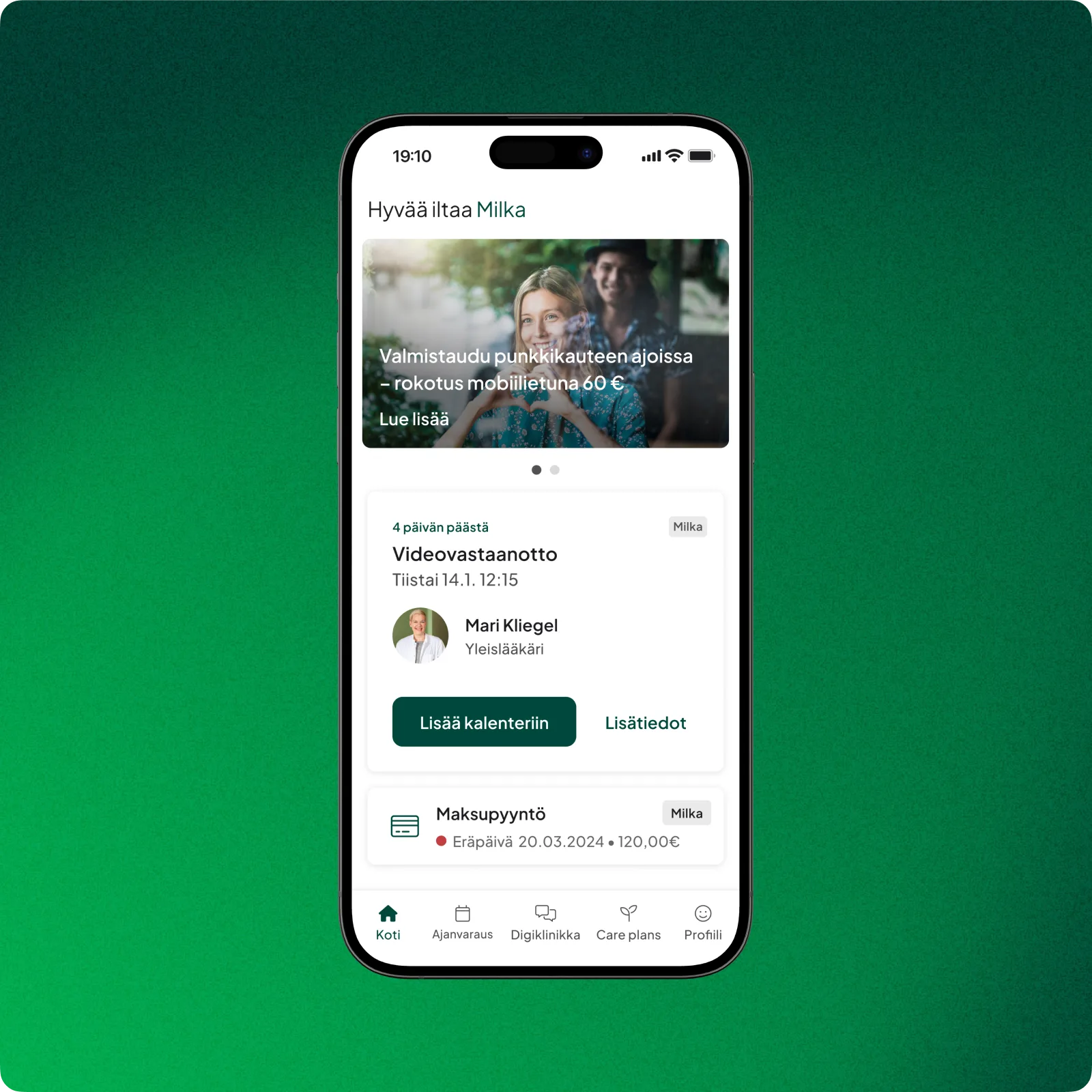 - Räätälöidyt viestit ja muistutukset omaan terveystilanteeseen liittyen