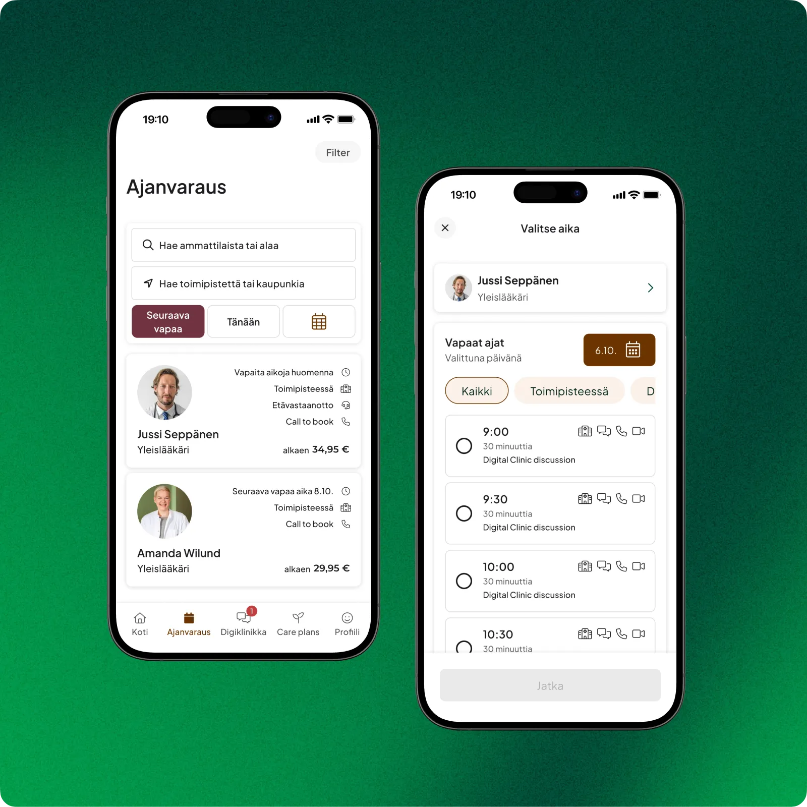 - Vastaanottokäynnin, chatin, puhelun tai videoyhteyden varaaminen